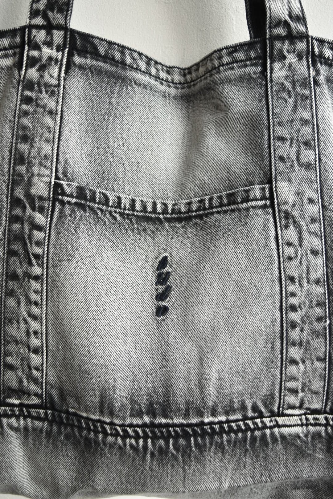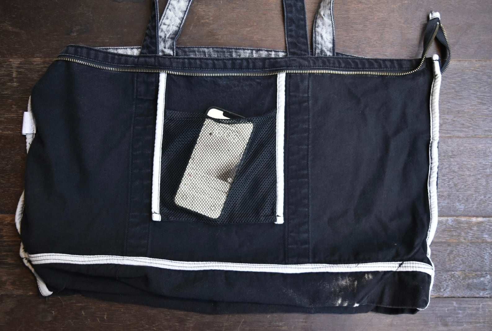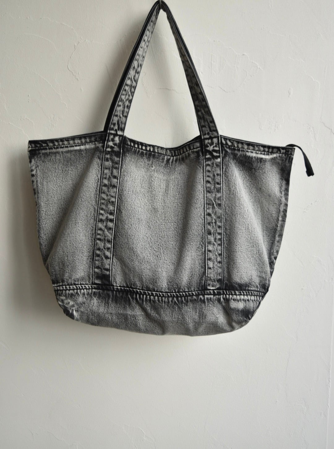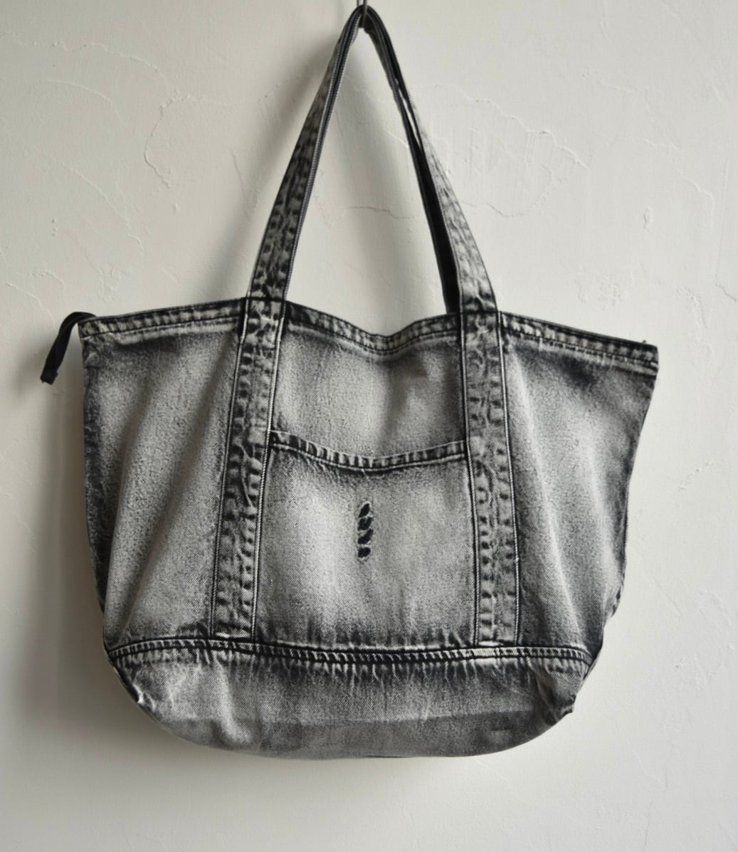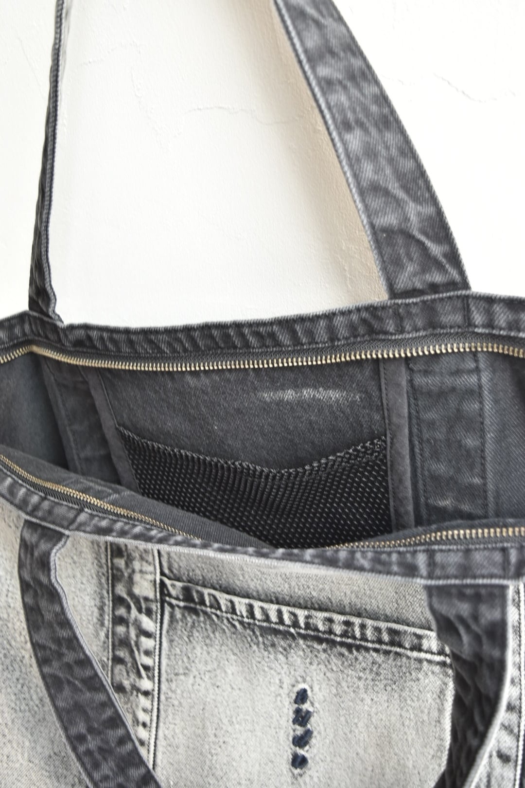 <【bud 0】DENIM 2POCKETS TOTE BAG> bleached black(※ブリーチ仕上げ 製品洗いあり)