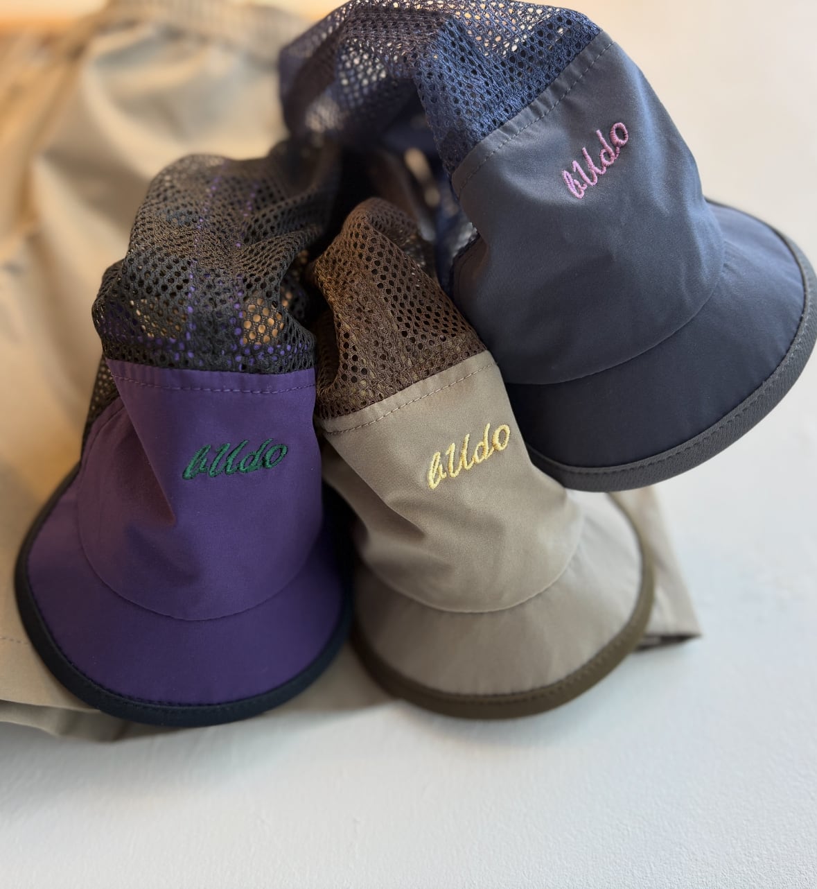 ブリムを立てたり、後ろにしたりすることで被り心地を変更できます。乾いてきたらまた元に戻ります。