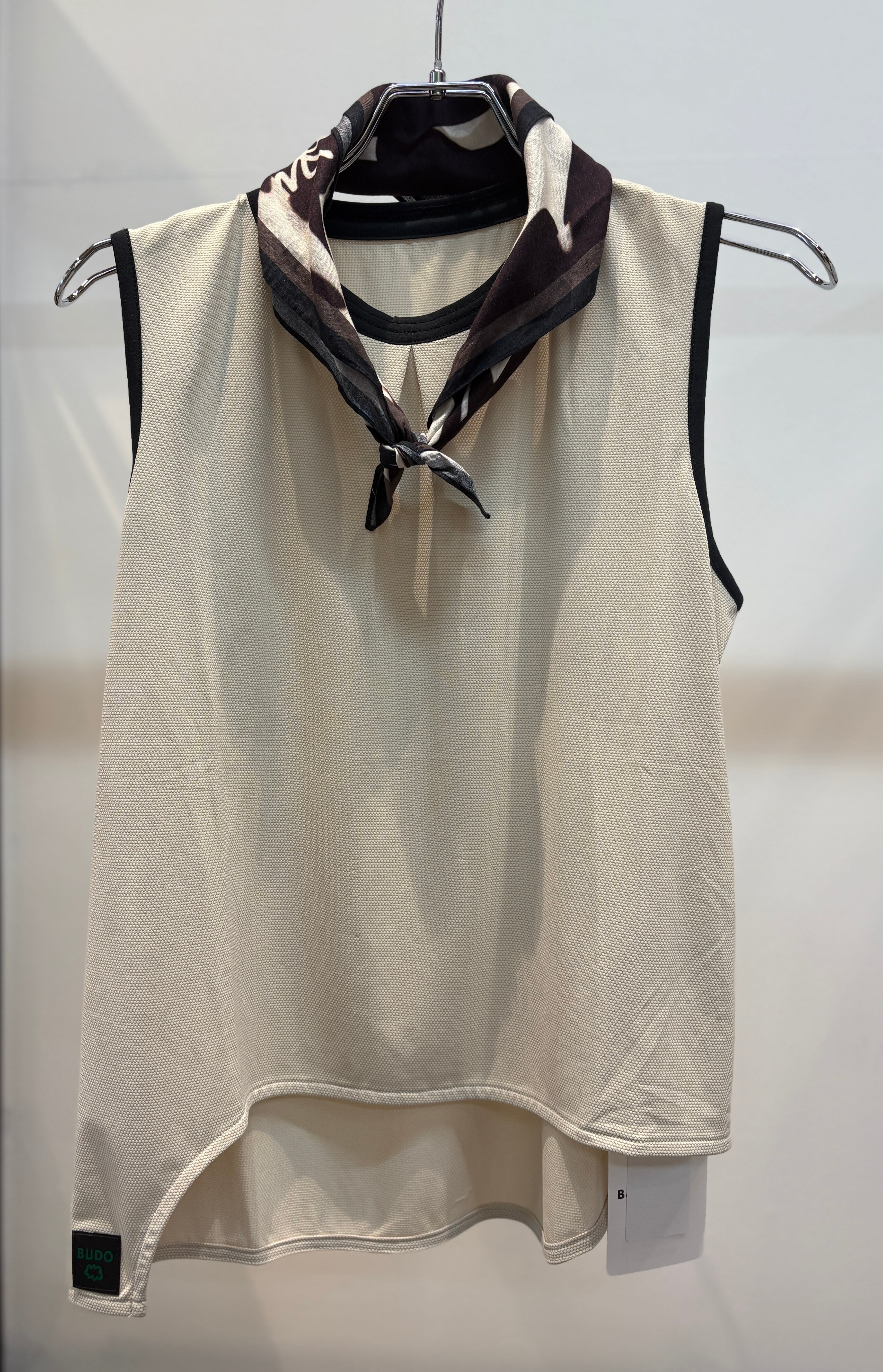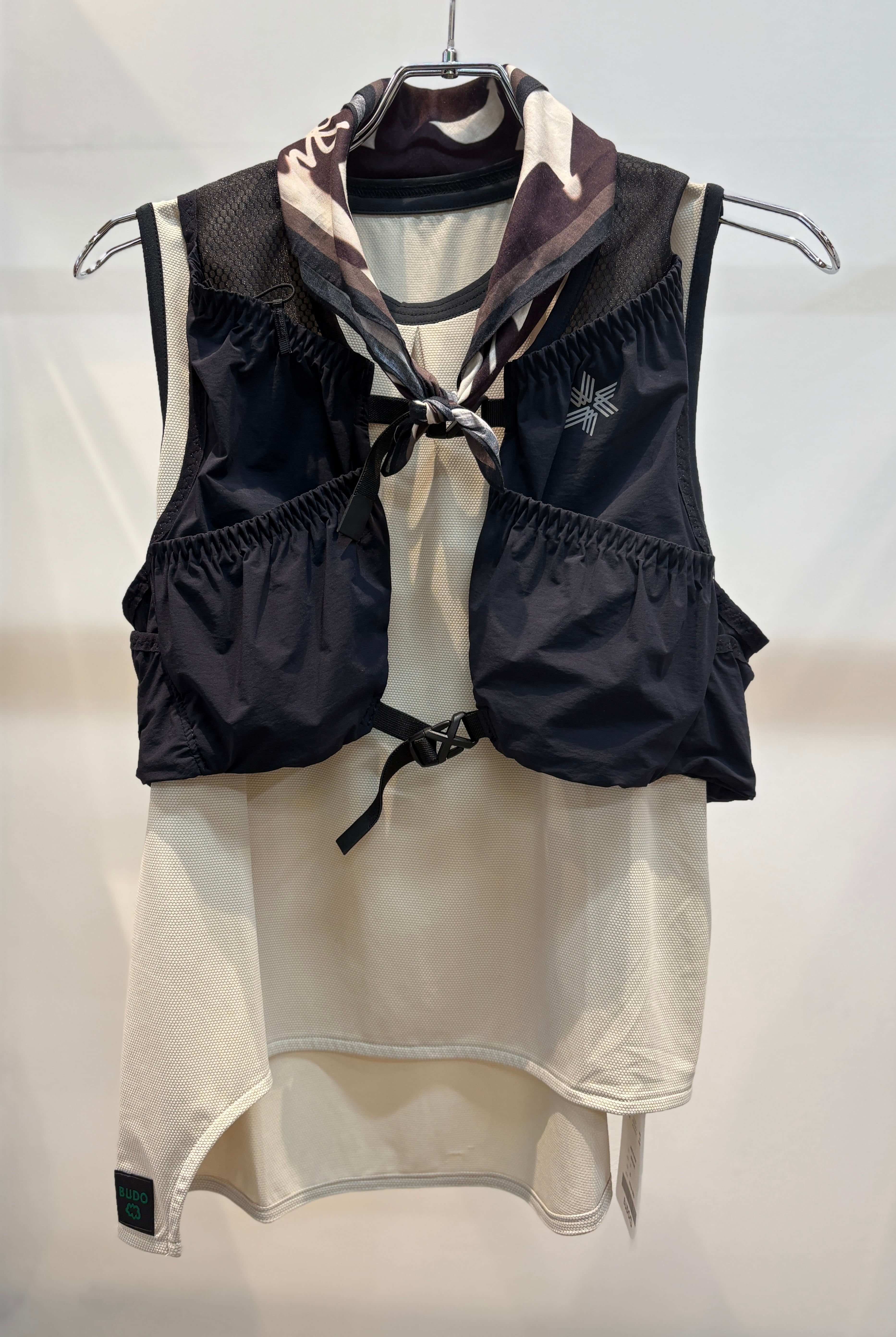 このバンダナはフリーハンド&不規則に構成され、折り方によってはBUDOのロゴが現れたり、現れなかったりします。