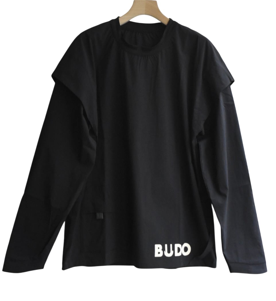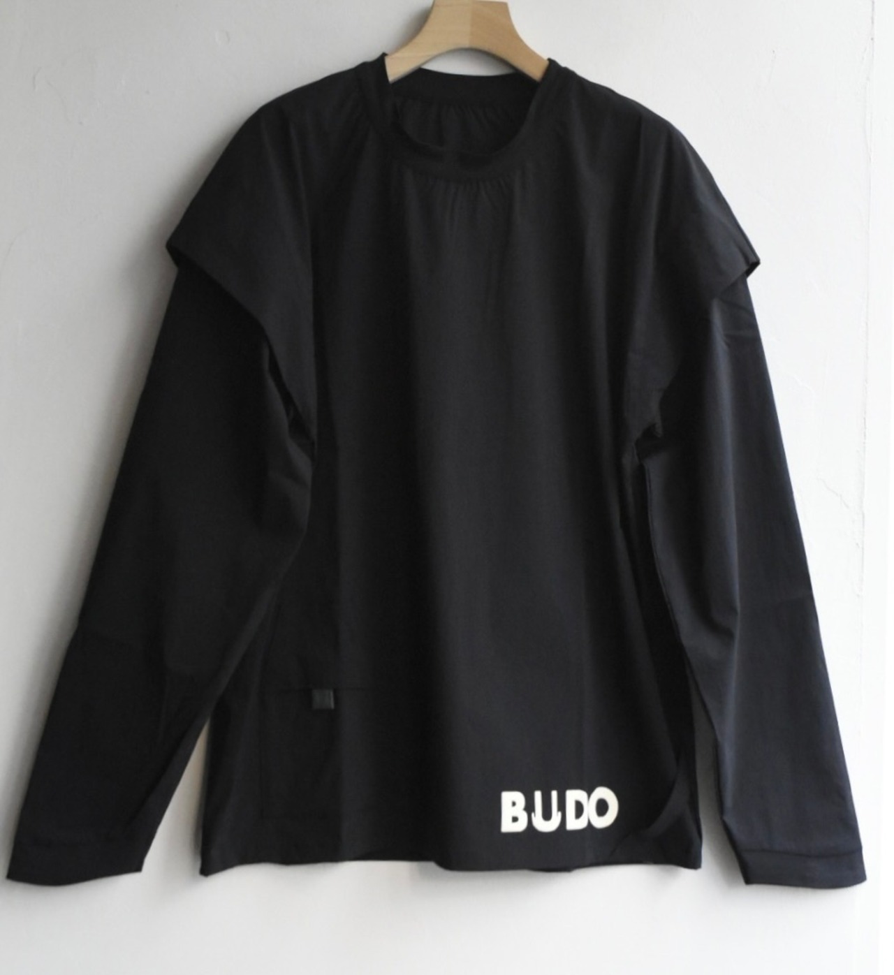 附属類などを使用せずに、素材とカッティングで表現したBUDOのクリエイションが詰まった1枚。
