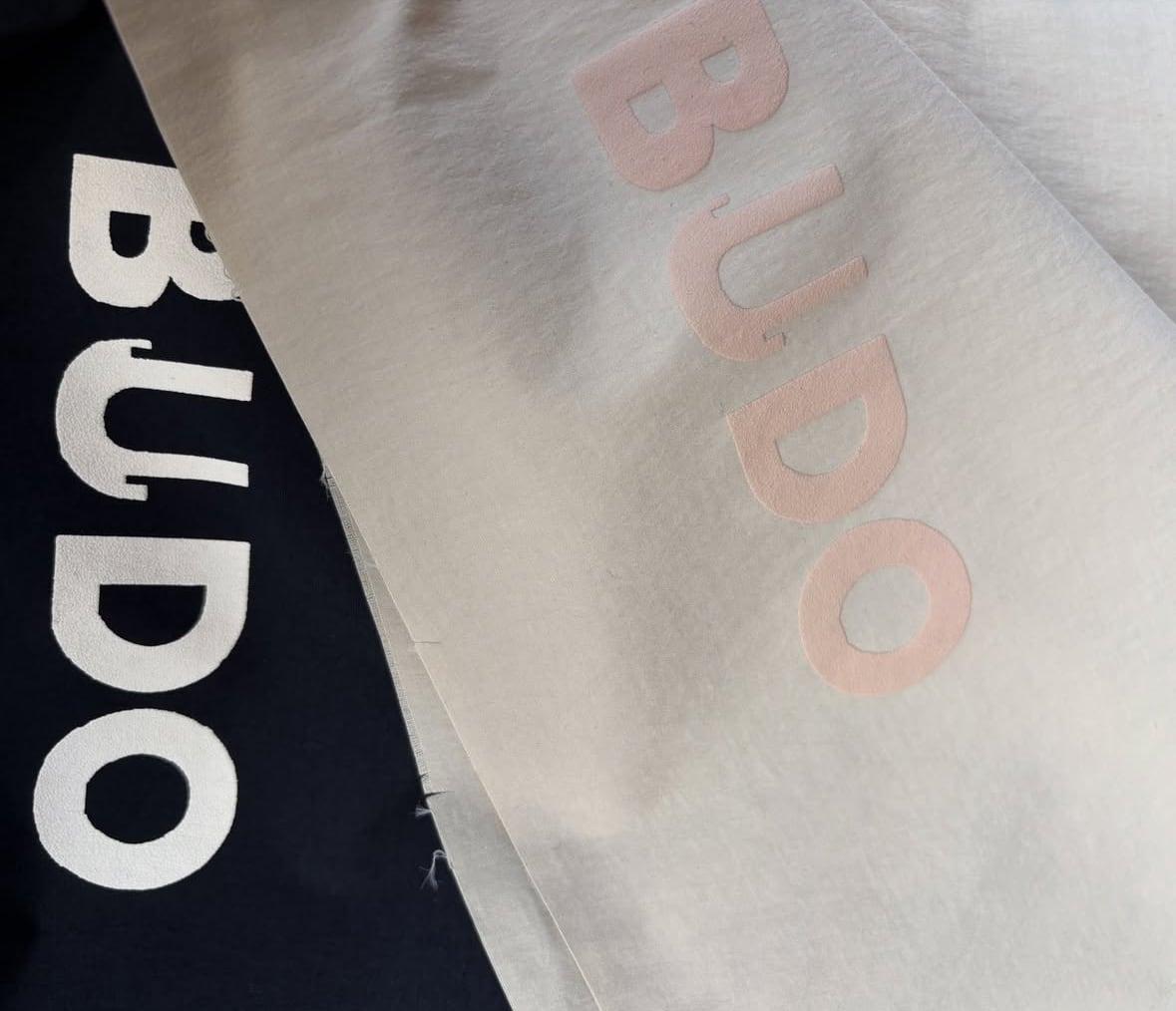 ・ロゴ部分は立体的なプリントを職人さんがひとつひとつ調節しながらプリントして仕上げます。
