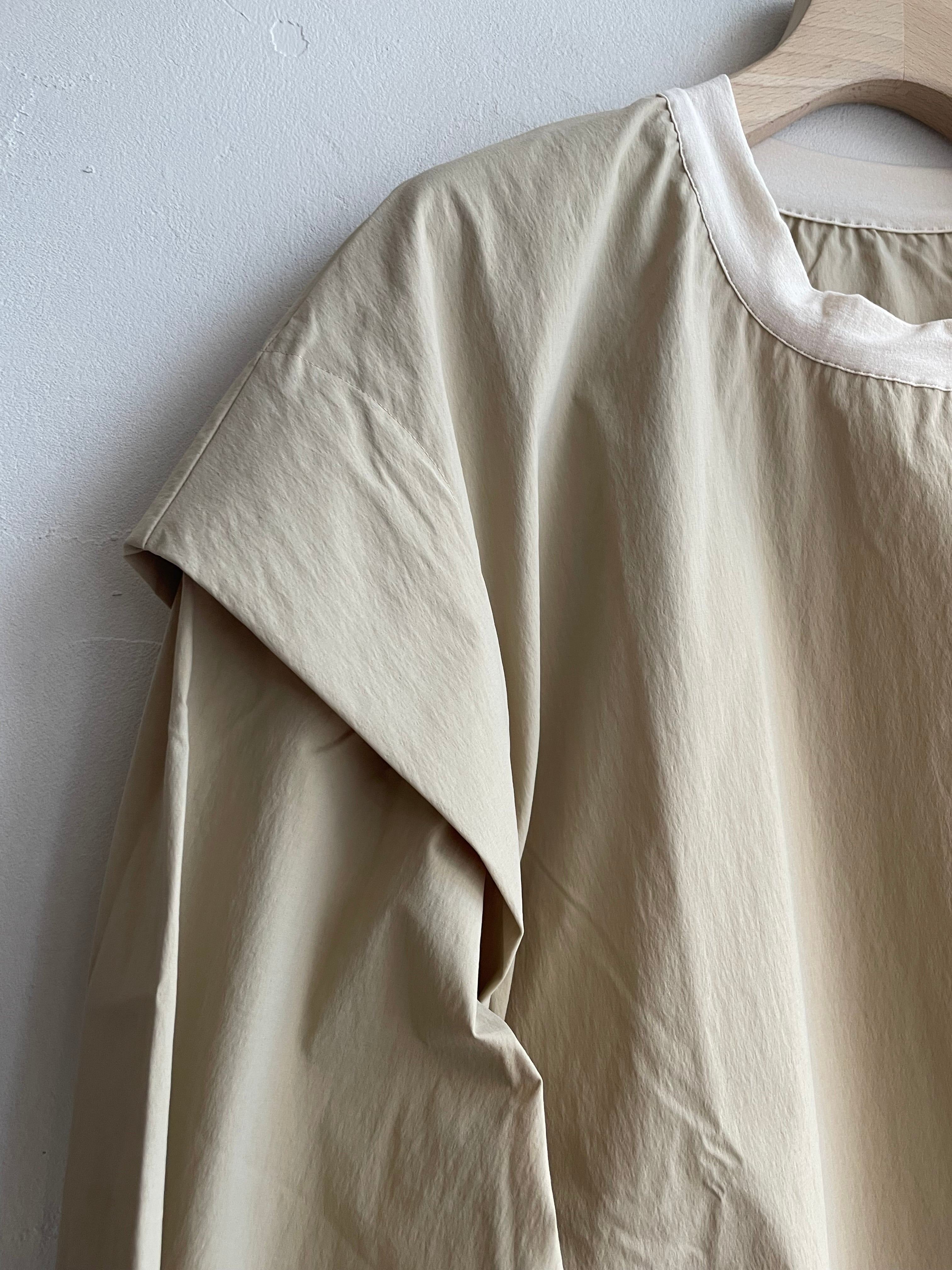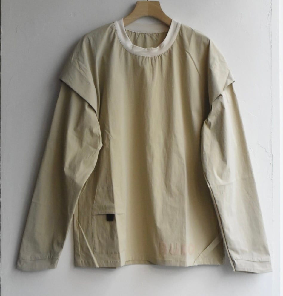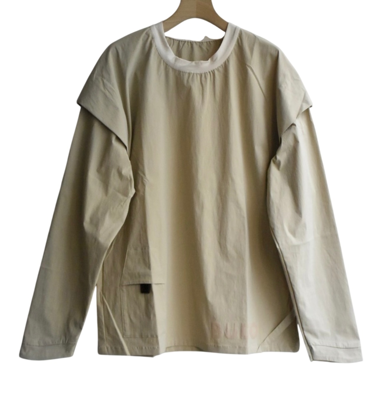 ナイロン本来の優れた機能性を活かしつつ、スポーティになりすぎない、天然素材のような上品な表情を併せ持つ高機能素材を使用したプルタイプのレイヤーシャツ。
