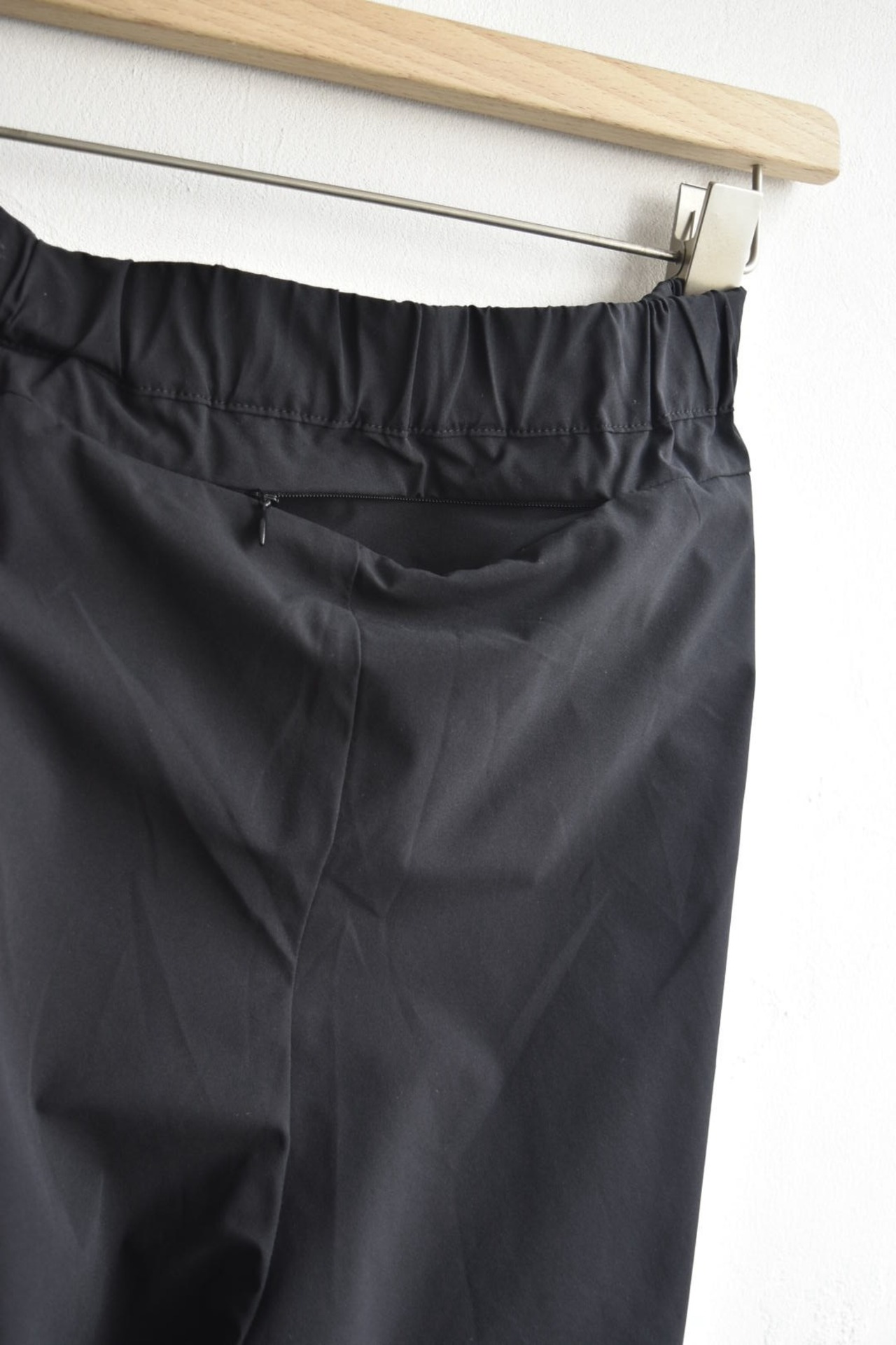 微撥水性・速乾性があり、タイトなシルエットながらよく伸びるのでショートパンツの上から重ね着しやすく、ウエスト紐でくるくるっと結んでしまえば、ポケット収納できるくらいコンパクトになります。