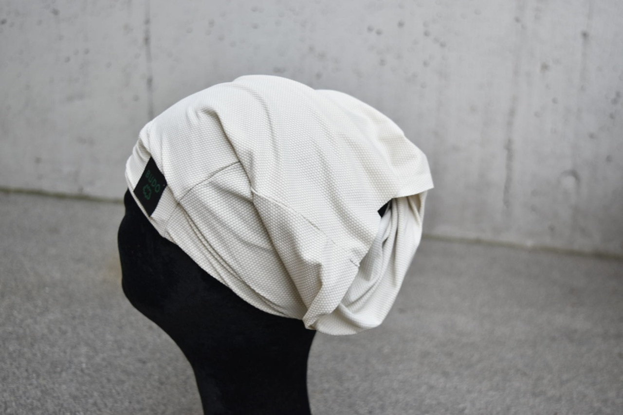 今回BUDOで使用している素材は、ポリウレタン率4%で、他糸と混紡された5%以下くらいですと、使用数年後の経年劣化劣化の視覚的な変化においては綿やシルクなど他の天然素材などとあまり変わらない経年の使用感だと認識して製品化しております。(使用頻度、お手入れ、使用洗剤などにも関係します)